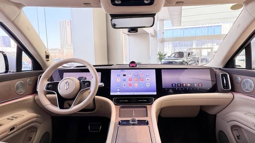 感知硬件从顶置扩展到侧后向固态激光雷达,配合可变色星环灯的人车交互;智驾计算平台由两颗5nm自研马赫100组成,总算力达2560TOPS。