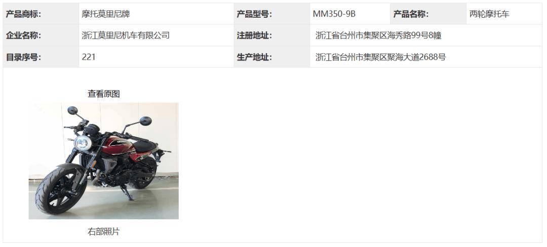 莫里尼的350复古街车登上了本期工信部新车名录。