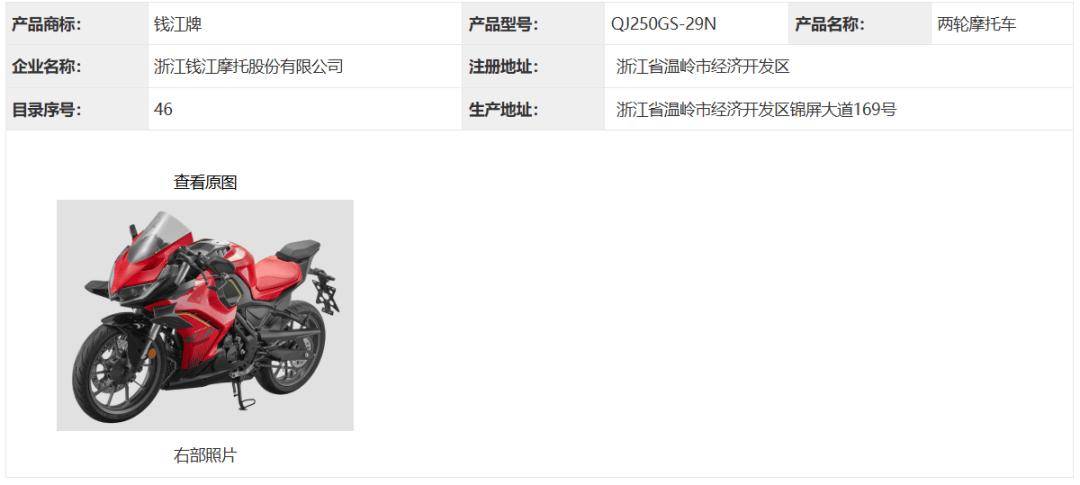 钱江本次申报了四款车型,鸿250的龙骨版和平踏版,还有全新赛250RR和闪250。