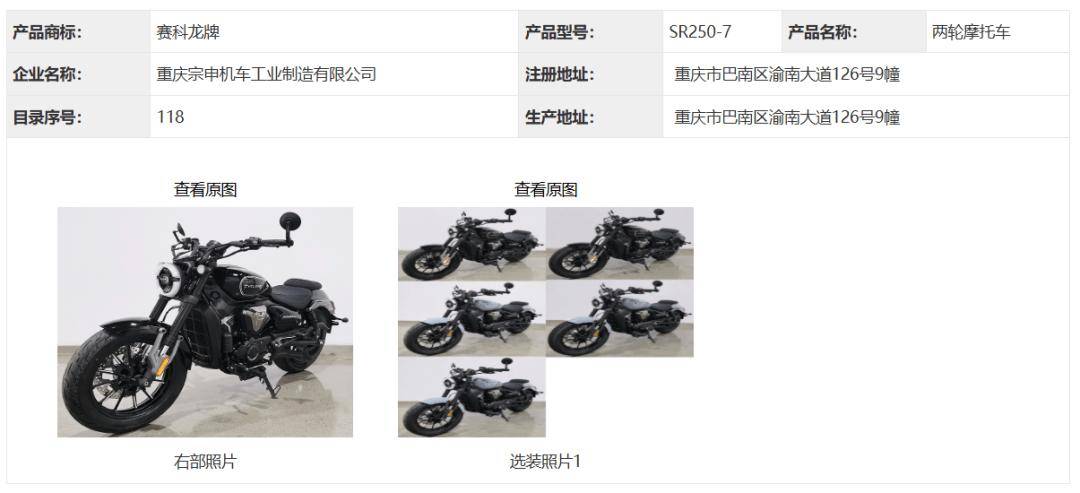 赛科龙本次申报了两台巡航车型RA250和一台新的600cc巡航。