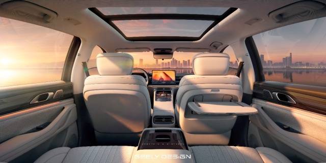 进到座舱里面,空间数据上,前排腿部空间最大1083mm,肩部空间最大1502mm,地板是纯平的。用料方面,内饰软包面积达到了5.4㎡,这个覆盖范围在同级里不算低。座椅采用了百万豪车上常见的浮雕打孔工艺,还配了高级阻尼配件。内饰颜色有三种:云锦白、香檀棕、素罗灰。舒适性配置上,全车配的是“中国椅”,座垫里加了15mm厚的高弹高密海绵层,支持通风、加热,还有全车背部和臀部双分区按摩功能。前排座椅可以180度纯平放倒,变成一个比较平的躺位,配合28点按摩,长途出行能缓解一些疲劳。座椅有16种不同的躺立组合,可以根据载物、观影、露营、小憩这些场景来切换。另外还配了同级少有的小桌板,承重15公斤,办公或者给孩子放点东西都够用。隔音方面用了双层夹胶玻璃,车内氛围灯是256色的,音响是16扬声器的Flyme Sound无界之声大师版。
