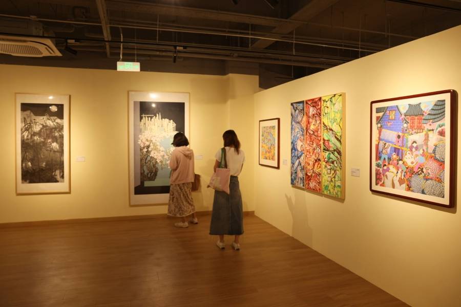 本届展览采取上海地区征稿和苏浙皖邀请参展的方式,共收到来自本市各区文旅部门与社会通道投稿作品3400余件。经过各级评选,最终遴选出获奖、入选作品150件及苏浙皖邀请参展作品30件。展出的180件作品以农民画、版画等民间民俗类艺术为主,同时涵盖国画、油画、水彩粉画、综合材料、漆画、连环画、月份牌、剪纸等多个门类,体现了展览的综合性、多样性与包容性,全方位展现长三角群文美术创作的整体面貌。这些作品题材丰富,既表现都市人文景观和美好生活,也承载江南乡土情怀的童年记忆;既展现当下大国重器,也呈现先辈浴血留下的精神遗产;既有传统视觉表达,也有新视觉、新手段、新科技表现。