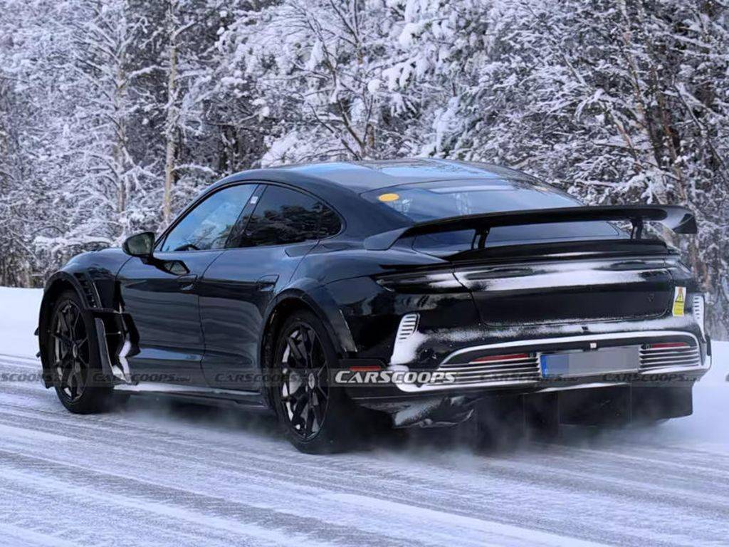 具体来看,这台强化版的保时捷Taycan的前扰流板造型经过重新设计,并且不再用赛车风格的支架进行固定。