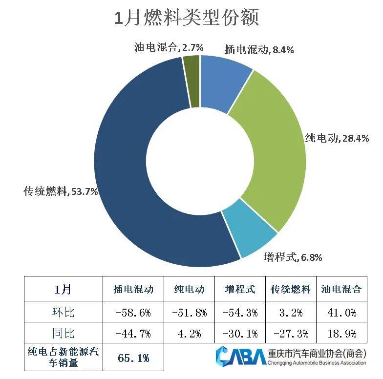 整体来看,随着新能源车购置税政策退坡,部分用户提前消费,从而透支了今年1月新能源车市场需求,因此1月销量负增长在预期之中。