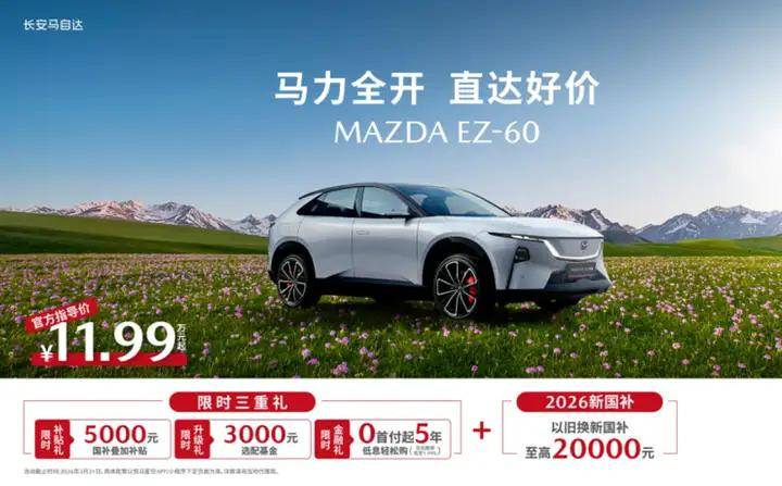目前,EZ-60 运动版已正式到店,2026 年 3 月 31 日前购车可享三重新春限时礼遇:限时补贴礼:5000 元国补叠加补贴,购车更划算;限时升级礼:3000 元选配基金,个性化定制自由;限时金融礼:0 首付起、5 年低息,年均费率低至 1.99%。
