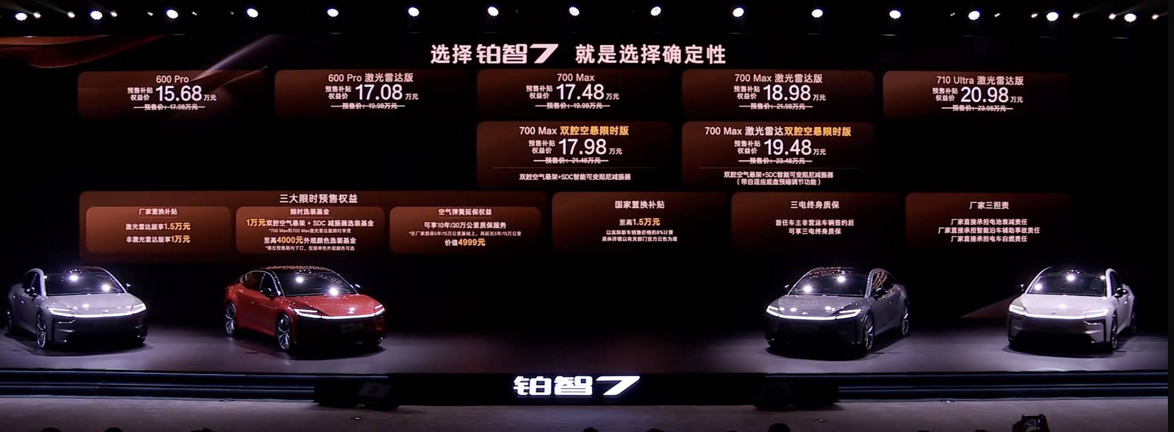 除此之外,铂智7还延续了丰田全球统一的严苛品控标准,三电系统可适应-30℃至50℃全气候环境,完成904万次悬架耐久测试,达到行业标准两倍,侧柱碰电池零侵入,安全性拉满。广汽丰田还为该车推出“厂家三担责”政策,承诺电池自燃担责、智能泊车辅助事故担责和电池衰减担责,全方位解决纯电用户的顾虑。据悉,此次预售将公布具体的配置、预售价格及购车权益,预计预售价格区间在18至25万元,计划3月内正式上市,目前已在全国131座城市开启到店品鉴活动。这款集百年品质、中国科技、越级配置于一身的纯电旗舰,不仅是广汽丰田智电转型的重要突破,也将为20万级纯电市场带来新的竞争格局,让消费者不用再在“合资品质”和“智能体验”之间做选择题,成为20万级纯电D级旗舰市场的全能之选。