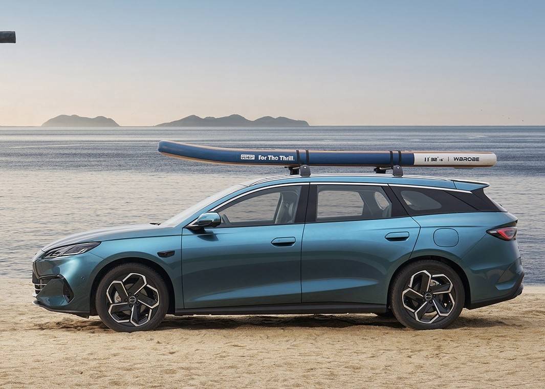 车身侧面采用旅行车特有的修长造型,车顶线条在B柱后平缓延伸,不仅优化了风阻,也为后备厢和第二排头部空间带来更充裕的表现。整车尺寸为4850/1890/1505mm,轴距2790mm,提供包括极汐绿在内的六款车漆颜色可选。