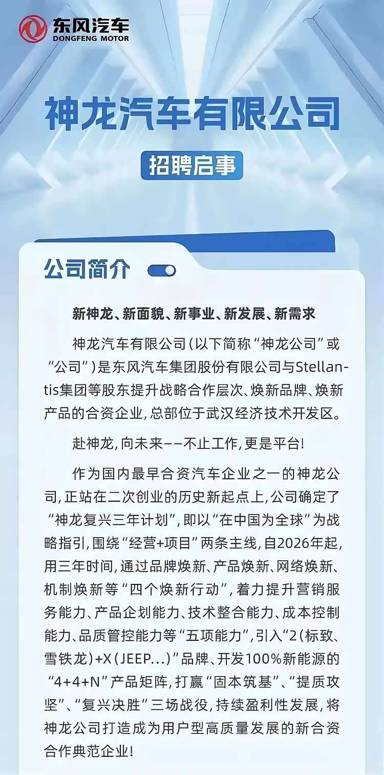 另一方面,来自新势力与科技公司的“新鲜血液”被注入关键岗位。用户体验中心负责人刘桢来自小米,营销数智中心负责人王维东来自小鹏汽车,这种跨行业的人才引进,直指神龙在用户运营、智能生态与数字化营销上的短板。尤其是小米与小鹏在“用户体验”与“数据驱动”上的基因,有望帮助神龙在新能源转型中构建更具竞争力的用户触达体系。