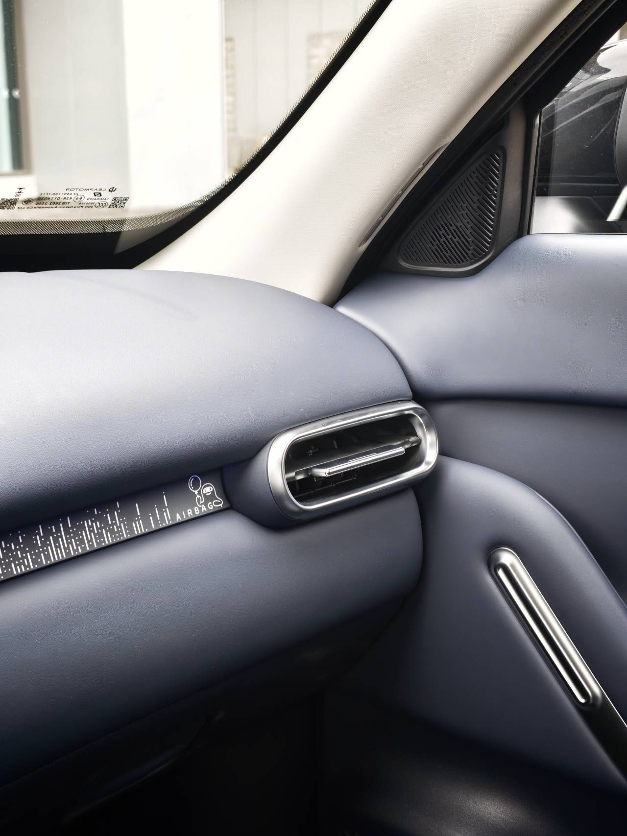除顶配外,其他配置级的车机系统都用的是8155芯片,的确不算很流畅,显然顶配的车机操作起来确实会更加丝滑。此外,语音助手识别灵敏度也一般。但车内该有的功能都有,甚至次低配就配备了主驾6向电动座椅、全景影像、方向盘加热、哨兵模式和多色氛围灯,以及化妆镜也都带灯光照明。内部设计细节不少,我还注意到,内饰很多细节上都融入了品牌吉祥物“小零”的卡通形象,副驾左前方空调口旁突出的物体是个带氛围灯光的原厂香氛,可以选择不安装,因为通电,后期应该会有很多玩法可以解锁。