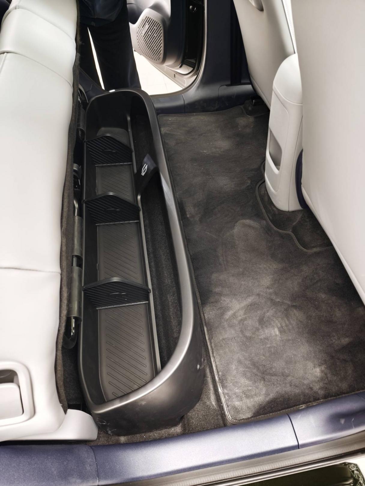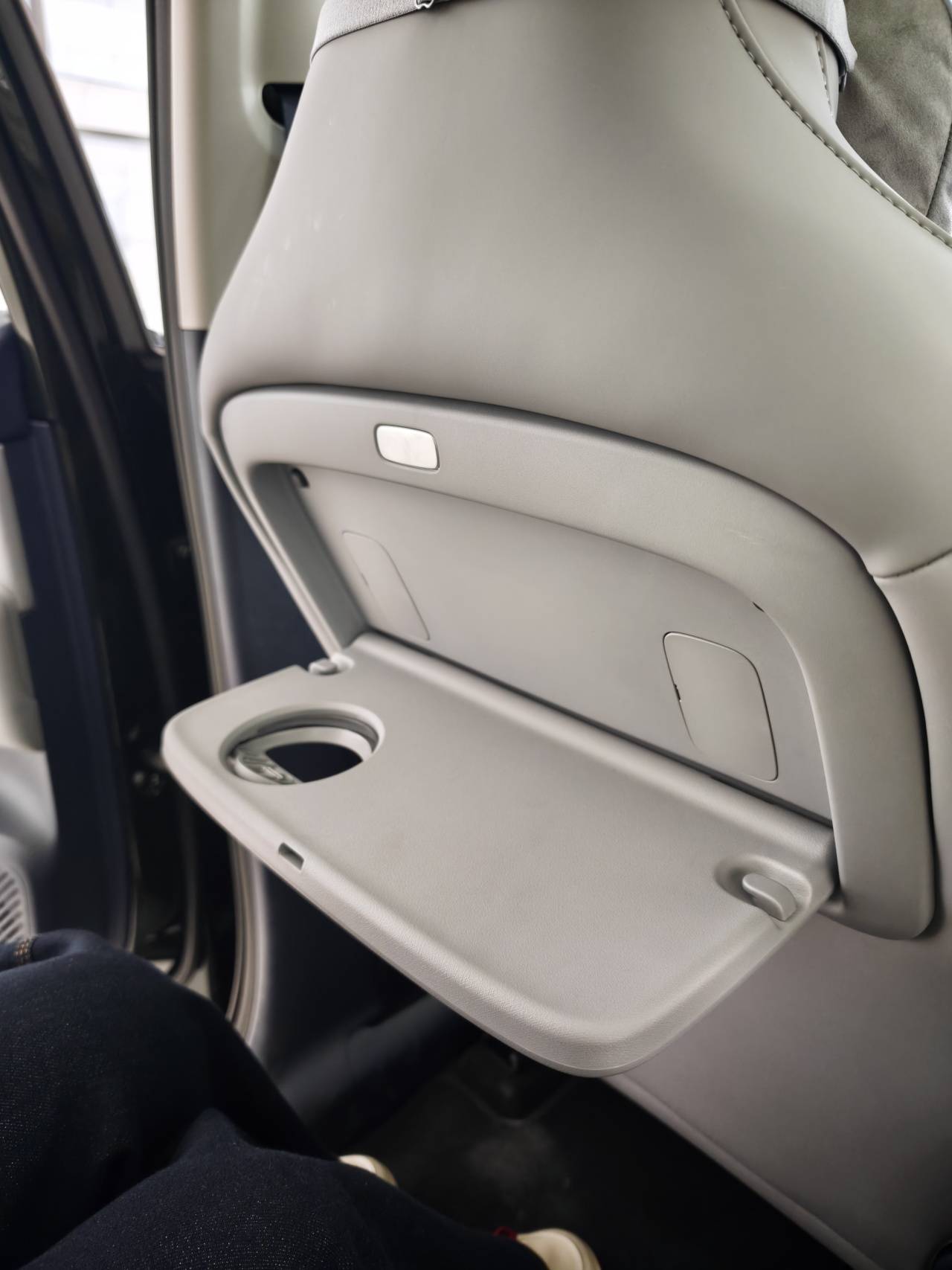后排则是配备了类似于魔术座椅的坐垫翻折功能,以及虽然面积不大但吃零食、放水杯时还算实用的小桌板,这些都会很吸引人——坐垫翻折之后放大件物品,或者是携带大型犬坐车;小桌板放个水杯之类,都是深入了用户的用车场景而设计,这点要点赞。