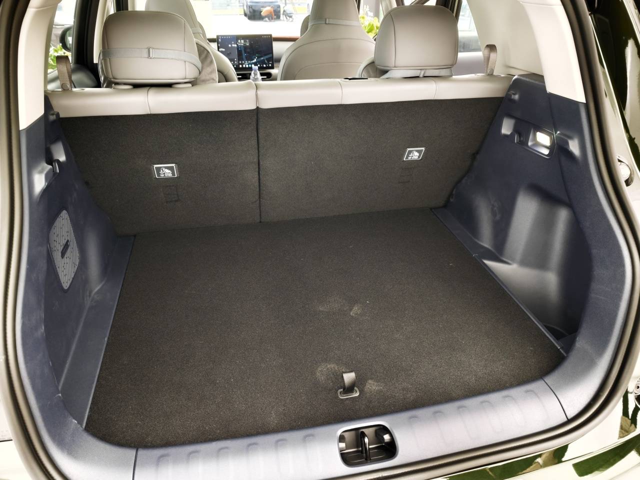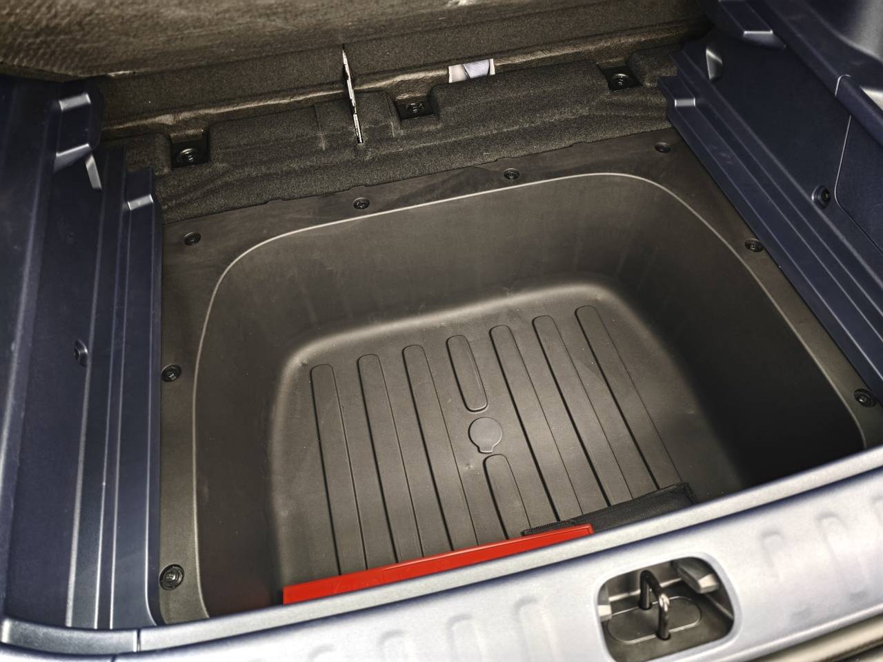 后备箱空间对于A10的车身尺寸来说并不小,地板是双层的,同时还有一个规整、巨大且可冲洗的深坑。由于所有电控机构都布置在了车头(包括充电口),所以A10就没有前备箱了。而机舱内给人的感觉也并不太规整,尤其打胶比较随意,不过还是那句话,价格摆在这里了,我实在没理由去过于苛责细节。