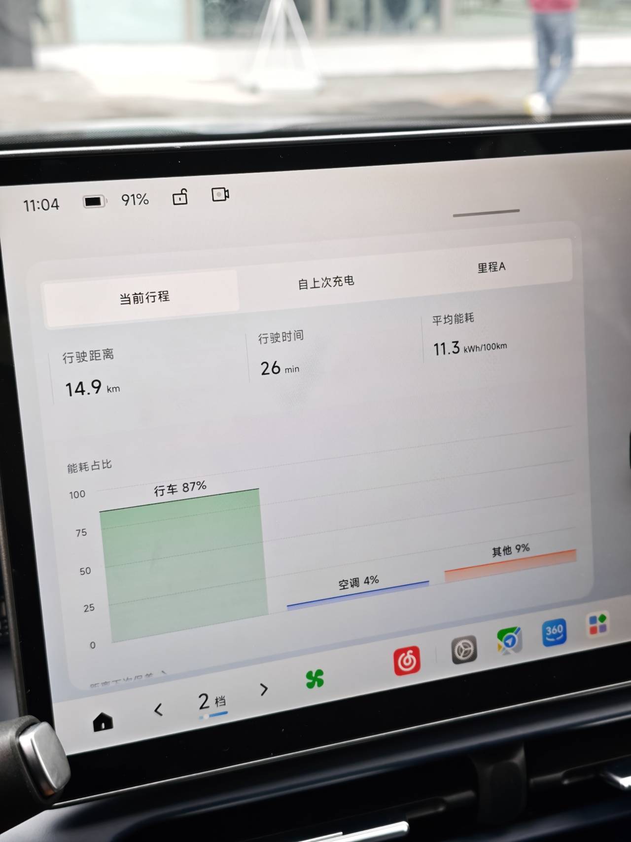 动力表现只能说比较一般了,哪怕是高功率长续航版本,电机功率也仅为90kW,就算全程使用运动模式也没法给人强劲的体感。给出瞬间大动力请求时,动力也要等一秒左右,才会“流淌”而出(这里没法用“倾泻”这个词),只能说平顺有余、力道普通,顺着踩、悠着开比较好,这其实也更符合它城市代步的定位。刹车表现不错,灵敏且力道均匀,有安全感。电耗表现也不错,具体表现如图。
