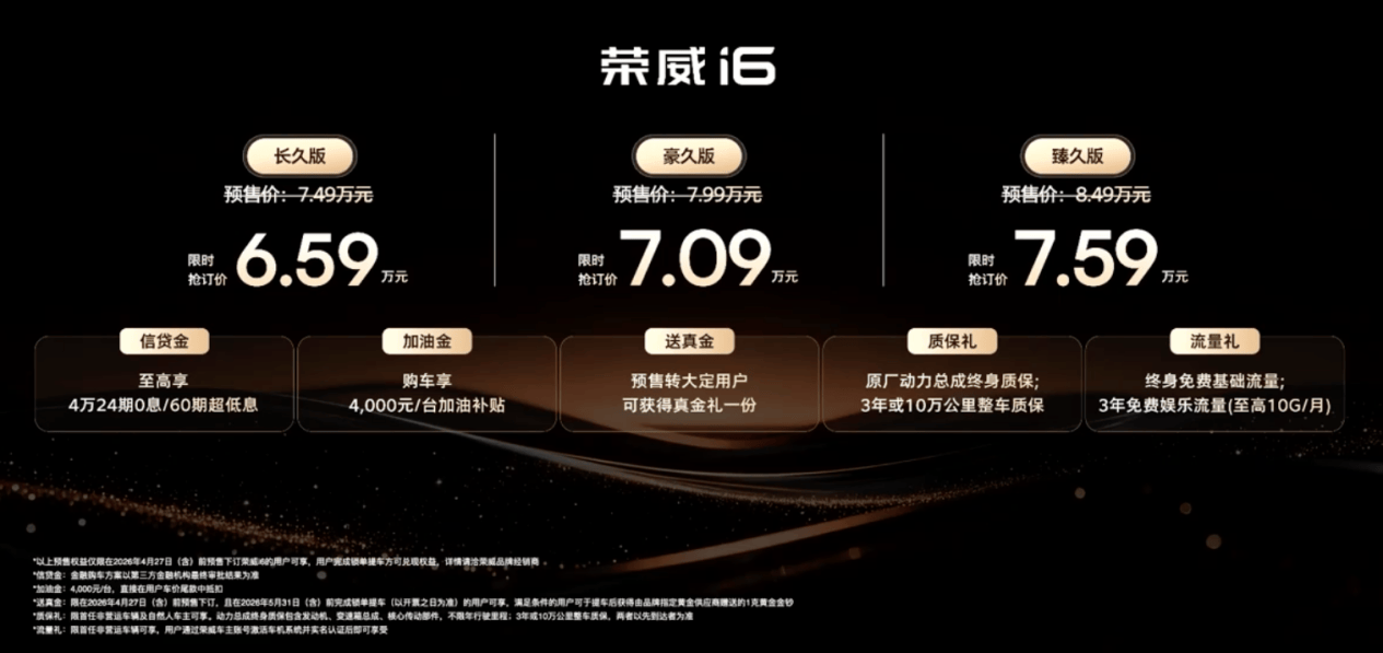 荣威i6的打法很清晰,它没想跟电车拼加速、拼自动驾驶,它做的就是一台让老百姓踏实开、省心用、配置不寒碜的燃油车。6.59万起的预售价,放在2026年的车市里,算是一股清流。如果你不想被续航焦虑和保值率问题折腾,又不想委屈自己开一台“毛坯房”,那这台车值得你去试一把。