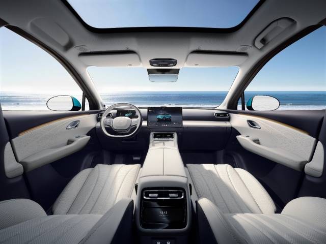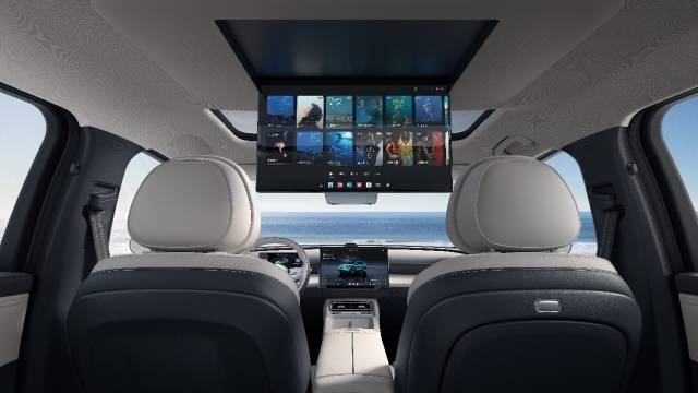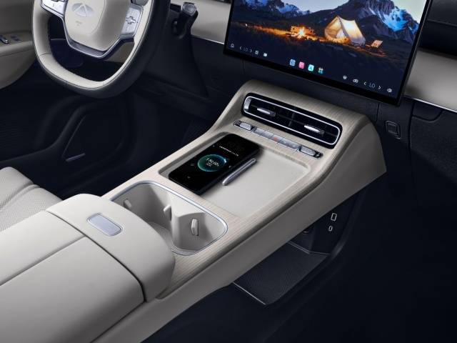 空间到位了,座椅和舒适配置也没落下。前排两个零重力悠然座椅,13层结构,最大能调到180度,16向电动调节,包括4向腰托、4向腿托和8向座椅调节,通风、加热、10点按摩全都有。二排座椅支持115度到125度电动调节,靠背和坐垫都带通风加热。这车还能实现前后排双大床模式:一二排拼起来是1825乘1315毫米,后排放平之后形成一个2203乘1210毫米的大平面。另外配了个6铰链小桌板,厚度只有28毫米,承重比普通铰链提升了33%。座舱内中控是15.6吋2.5K屏,后排有个17.3吋的娱乐屏,3K分辨率,亮度1000尼特,仪表盘10.25吋。