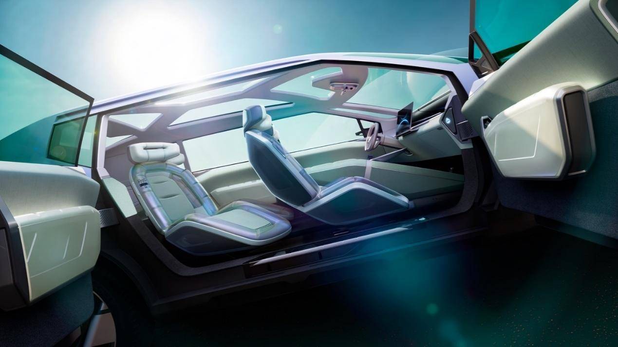 而EARTH CONCEPT(地球)则以地球的生命力与韧性为灵感,将家用纯电 SUV重新定义为融合自然、科技与力量的守护空间。其车身采用极光之盾配色,一体化车身轮廓搭配锐利的水晶质感线条,呼应地球的地质风貌,辅以岩石质感护板、外露式螺栓等硬核细节,塑造强悍的越野气质;玻璃车顶与透明框架设计,则平衡了坚固与轻盈;锐利的渐变灯光系统勾勒出细微的“H”形品牌标识,暗藏现代汽车品牌基因;集成式车顶行李架与隐藏式双开启车门,提升了日常使用便利性,更有行星主题“彩蛋”设计,给人意想不到的惊喜。