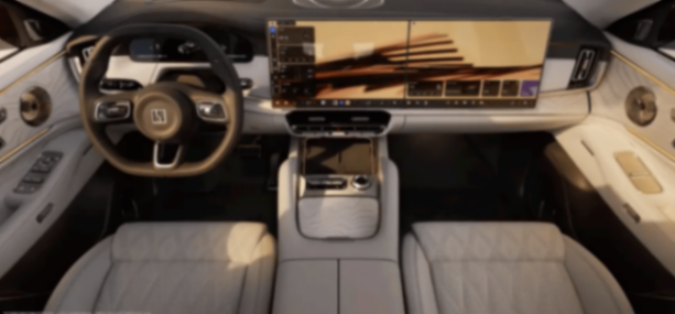 新车还搭载5D超感移动影院,配备Naim音响,拥有28扬声器,拥有7.1.4.8环绕声,二排装有17英寸3KOLED屏幕,配合空调、香氛、座椅、音响、氛围灯等多维度观感,提供沉浸式观影体验。