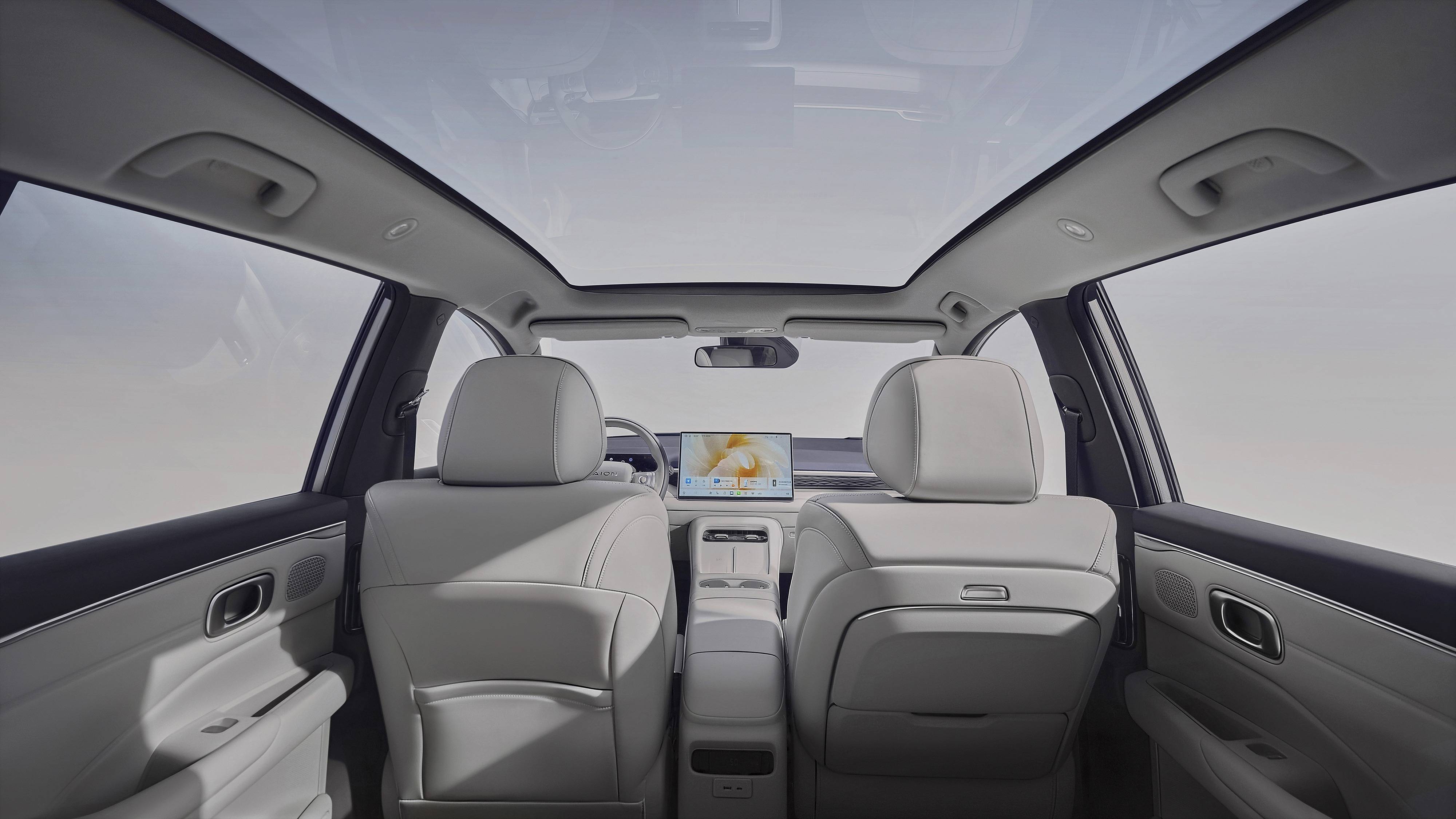 内饰部分,埃安N60如很多新能源车一样设计遵循简洁风格,中控配置有15.6英寸液晶屏,内置ADiGO 6.0人机交互系统。它的下方是50W无线充电面板,中央扶手下方可选装6.6L车载冰箱(-15-50℃)。后排座椅靠背角度最大可调至137度,行李厢最大储物空间1947L,还有69L的下沉式储物格。