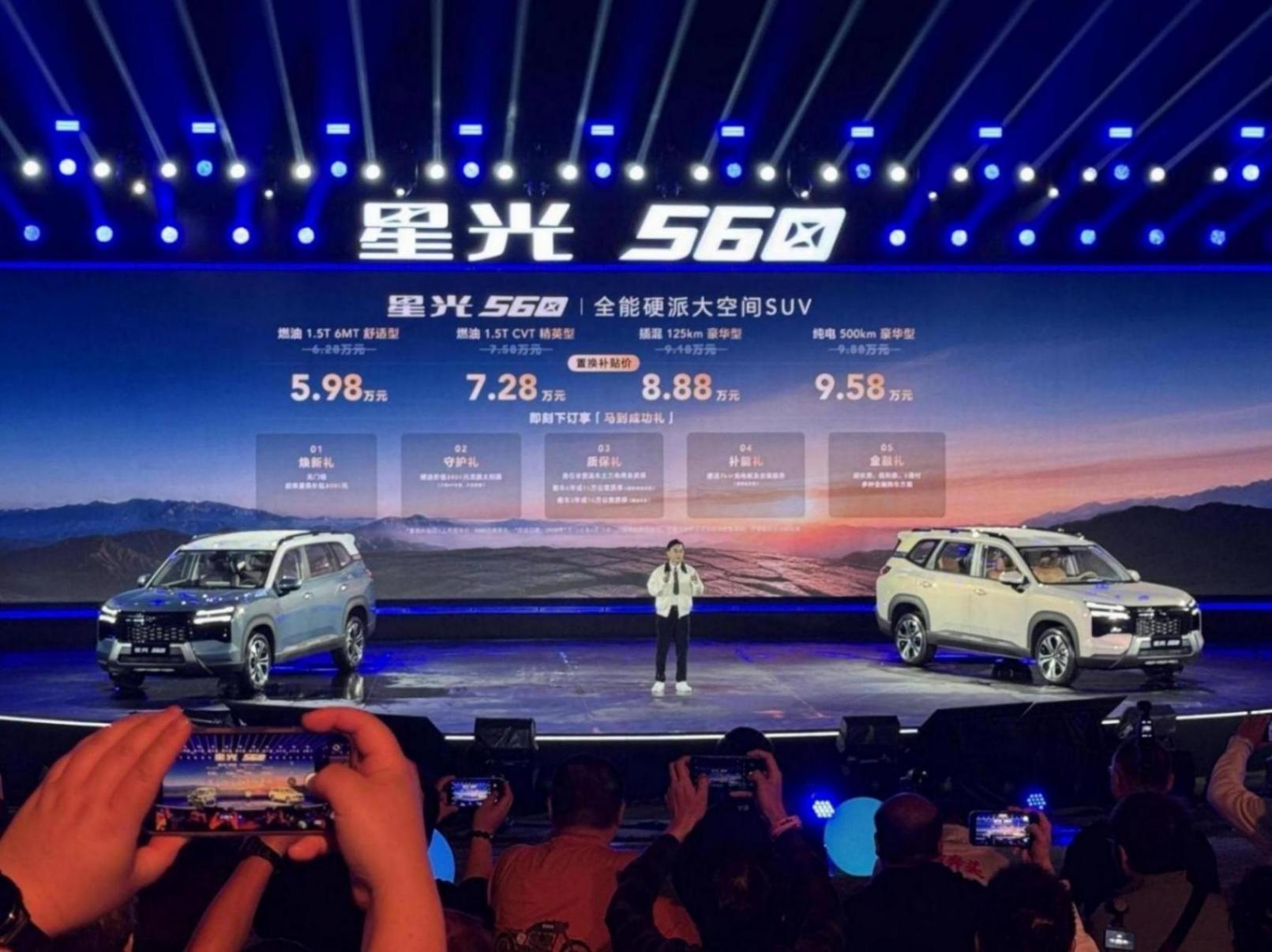 当硬派美学遇上越级实用,当多元动力碰撞亲民价格,五菱星光560的正式登场,为6万级SUV市场注入了颠覆性活力。2026年1月15日,这款承载着品牌千万用户期待的全能硬派大空间SUV宣告上市,以置换补贴价5.98万元-9.58万元的诚意定价,搭配四款覆盖燃油、插混、纯电的全动力车型,重新定义了高性价比出行的核心标准。从家庭日常通勤到长途自驾露营,从城市代步到营运需求,星光560凭借设计、空间、动力、安全四大维度的硬核实力,让每一种出行场景都能拥有从容解决方案。
