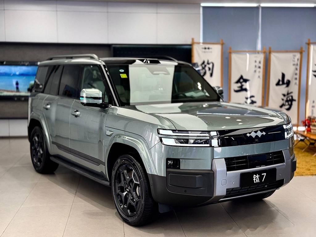 从外形来看,纯电版钛7和插混版钛7没有本质上的区别,依旧是采用方正的车身设计,整个造型看起来也比较地威武。