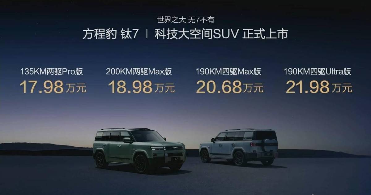 价格的话,目前插混版钛7的售价是17.98-21.98万,不知纯电版钛7的售价是否也会和插混版车型的售价保持一致呢?毕竟,纯电版钛7没有发动机,但是加大了电池包,所以这一来一回,新车价格应该还是不会大涨吧,你们觉得呢?评论区里留言说说看。