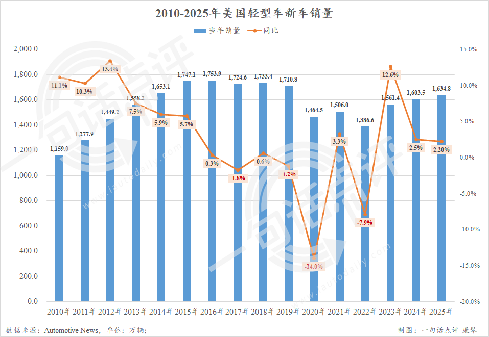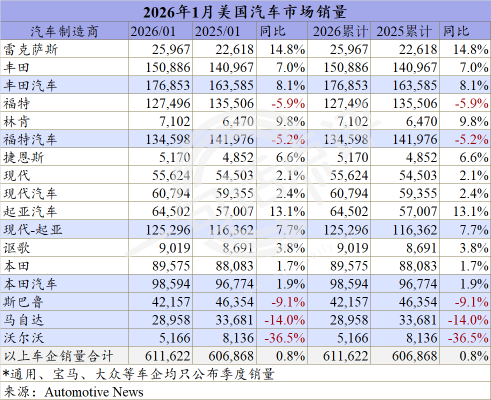 在2025年微增2.2%至1635万辆之后,虽然受电动车需求减弱、新车价格高企、贷款利率居高不下和极寒天气等因素的影响,今年1月美国轻型车新车市场继续保持增长。