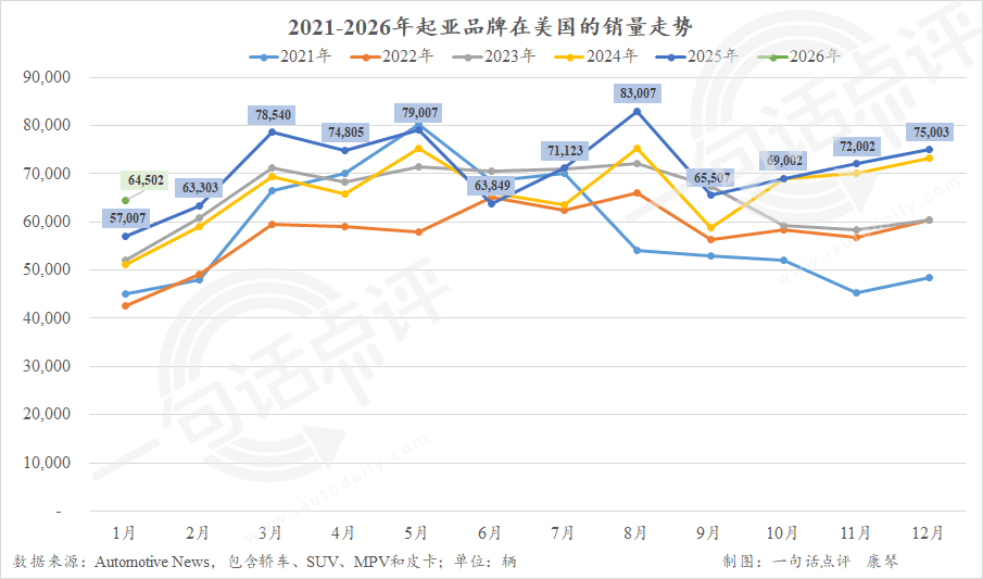 ●现代-起亚1月售出12.5万辆,创下其在美国市场的同期历史新高。