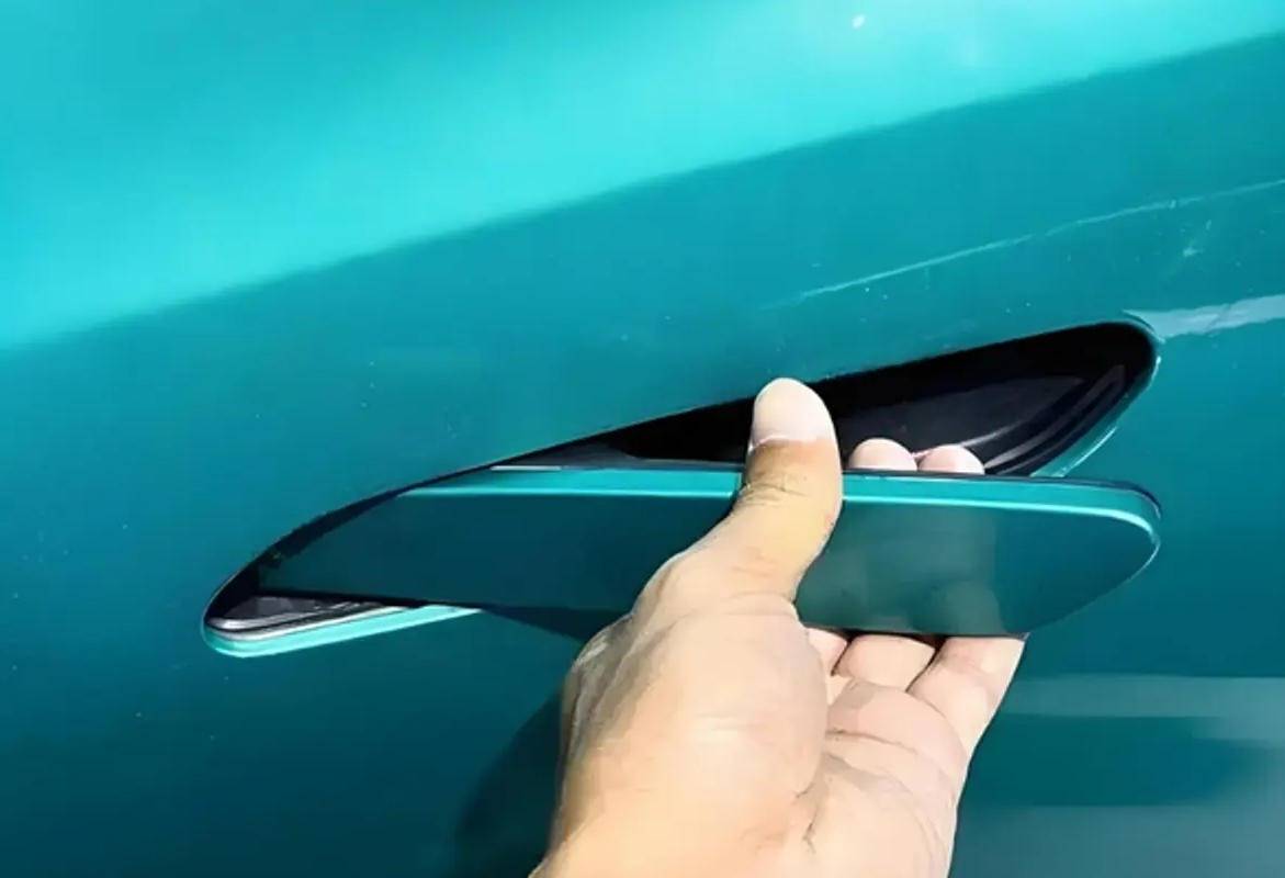 隐形门把手是一种内镶在车内上的装置,当车锁闭合时,与车身齐平;当车主靠近或触发时,才会自动弹出。这样的设计让侧面线条更简洁,更有科技感,因此被设计师追捧,同时可以减少乱流的产生,降低风阻,适合追求低风阻的电动车。