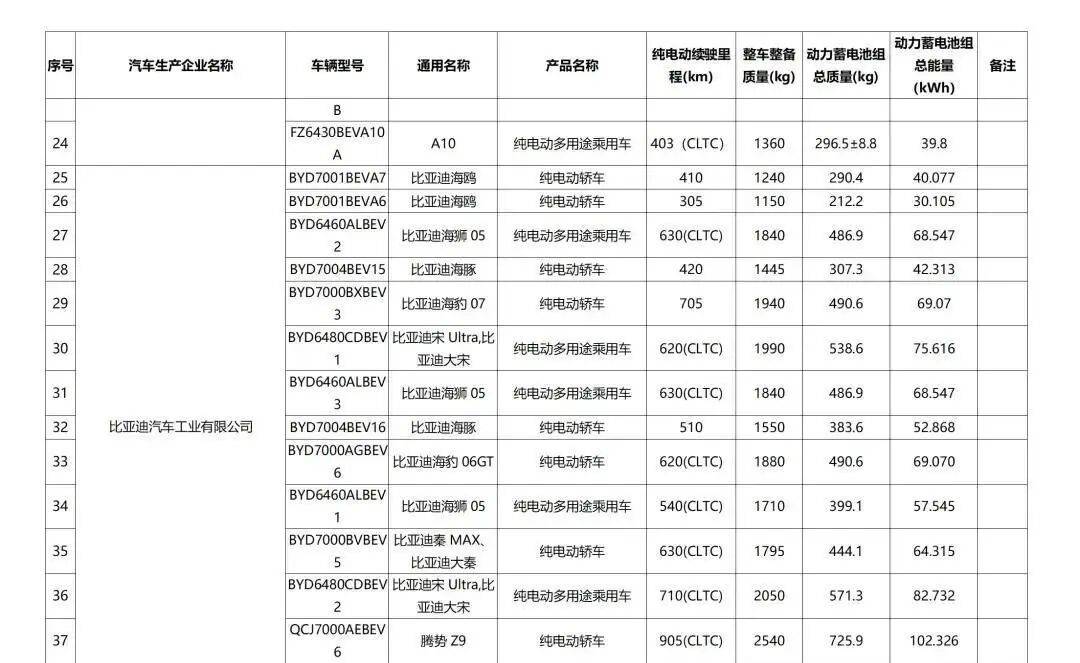 之前,比亚迪给仰望U7申报了150度电池,CLTC纯电续航1006km。而近日,在第二十七批减免车辆购置税的新能源车型名单中,腾势Z9GT、腾势Z9也进入了1000公里俱乐部。