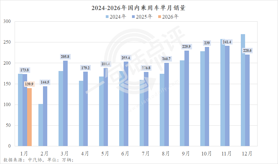 乘用车之所以会出现如此大的跌幅,主要是受到政策切换和春节假期的影响,导致1月国内乘用车销量下跌19.5%至139.9万辆。