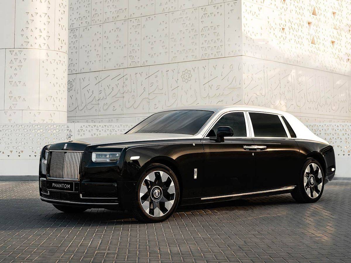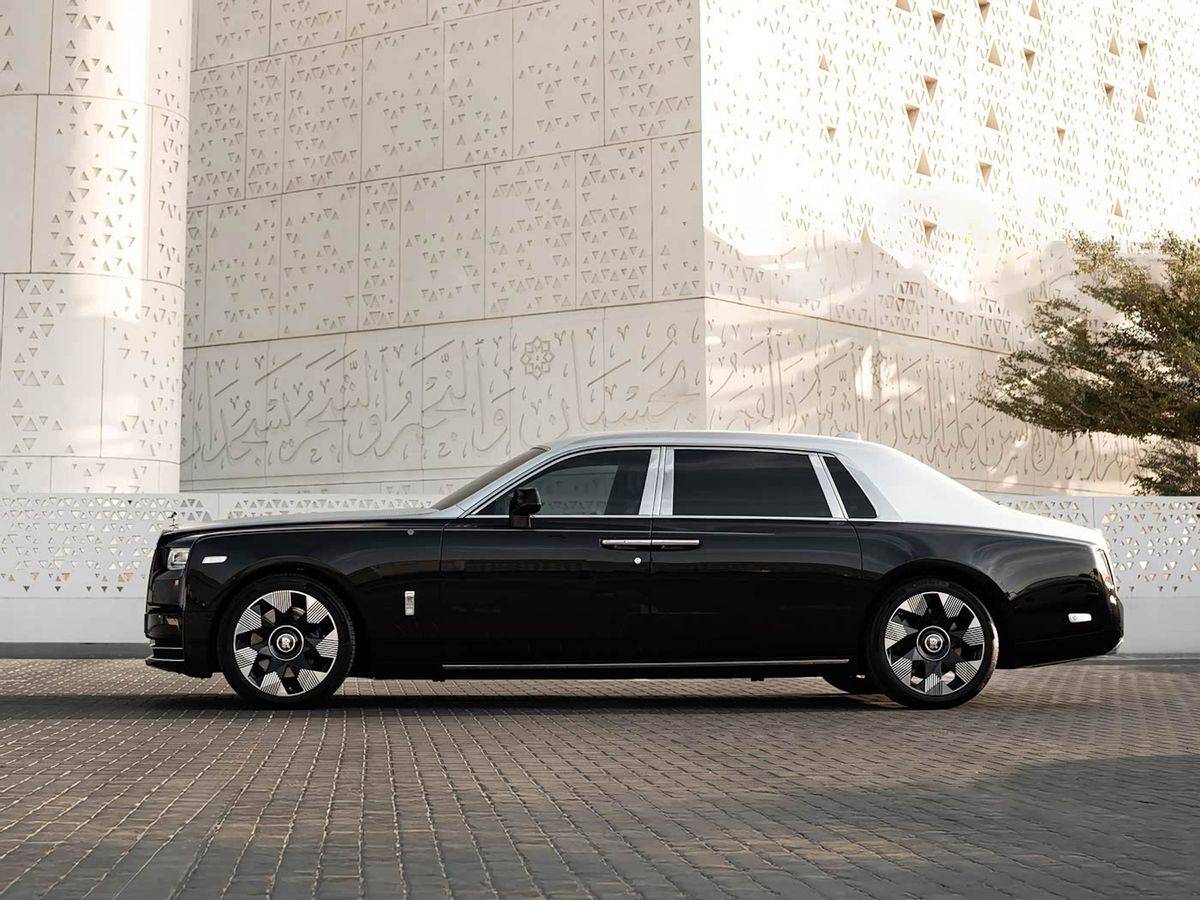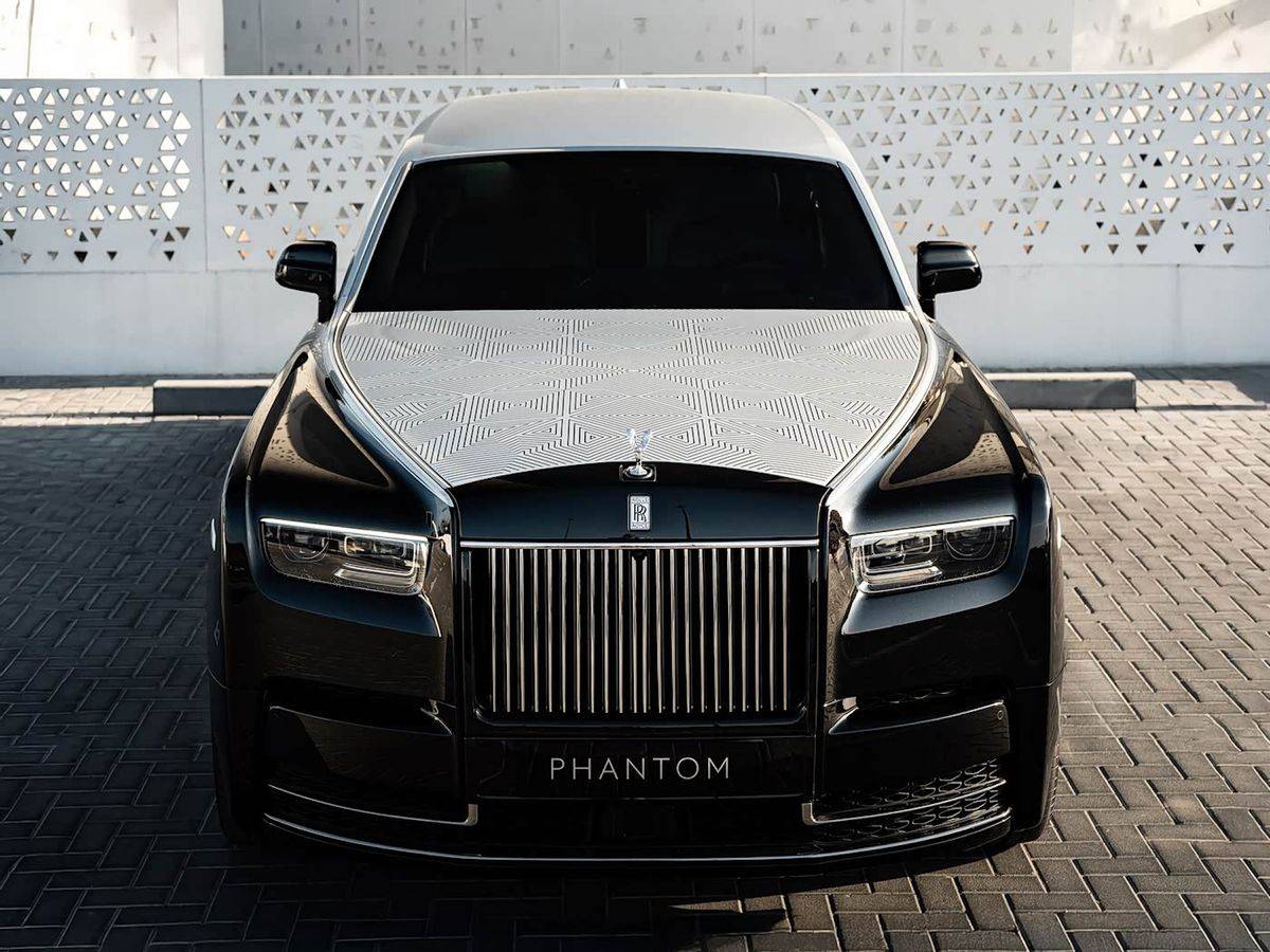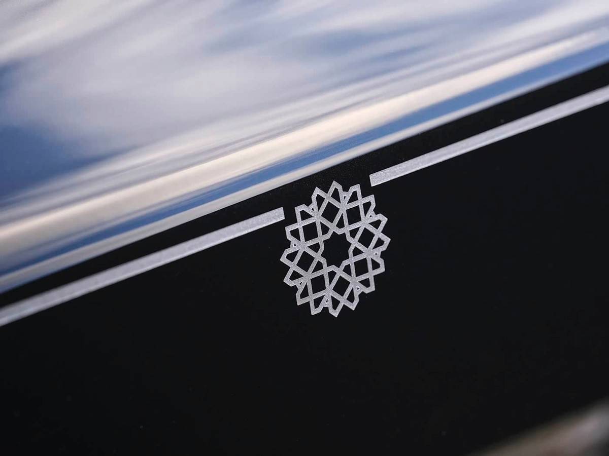 外观方面,新车采用了黑色与银色搭配的双色车身。发动机盖上的图案是这辆车的亮点,它使用了劳斯莱斯花了五年时间研发的激光雕刻技术。图案的设计灵感来源于中东传统的Mashrabiya风格,这是一种在当地房屋、宫殿里常见的装饰元素。在光线变化时,发动机盖上的图案会呈现出不同的视觉效果。