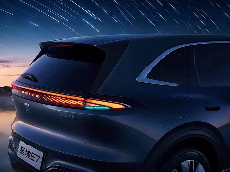 车尾方面,至境E7采用的是至境家族标志性的发散式尾灯设计,点亮后光源从中央的BUICK车标向外延伸,如同羽翼舒展,极具辨识度。贯穿式尾灯组,并内置智驾小蓝灯设计,有着不错的视觉感受。尺寸方面,至境E7的长宽高分别是4850毫米/1910毫米/1676毫米,轴距是2850毫米,一款典型的中型SUV。