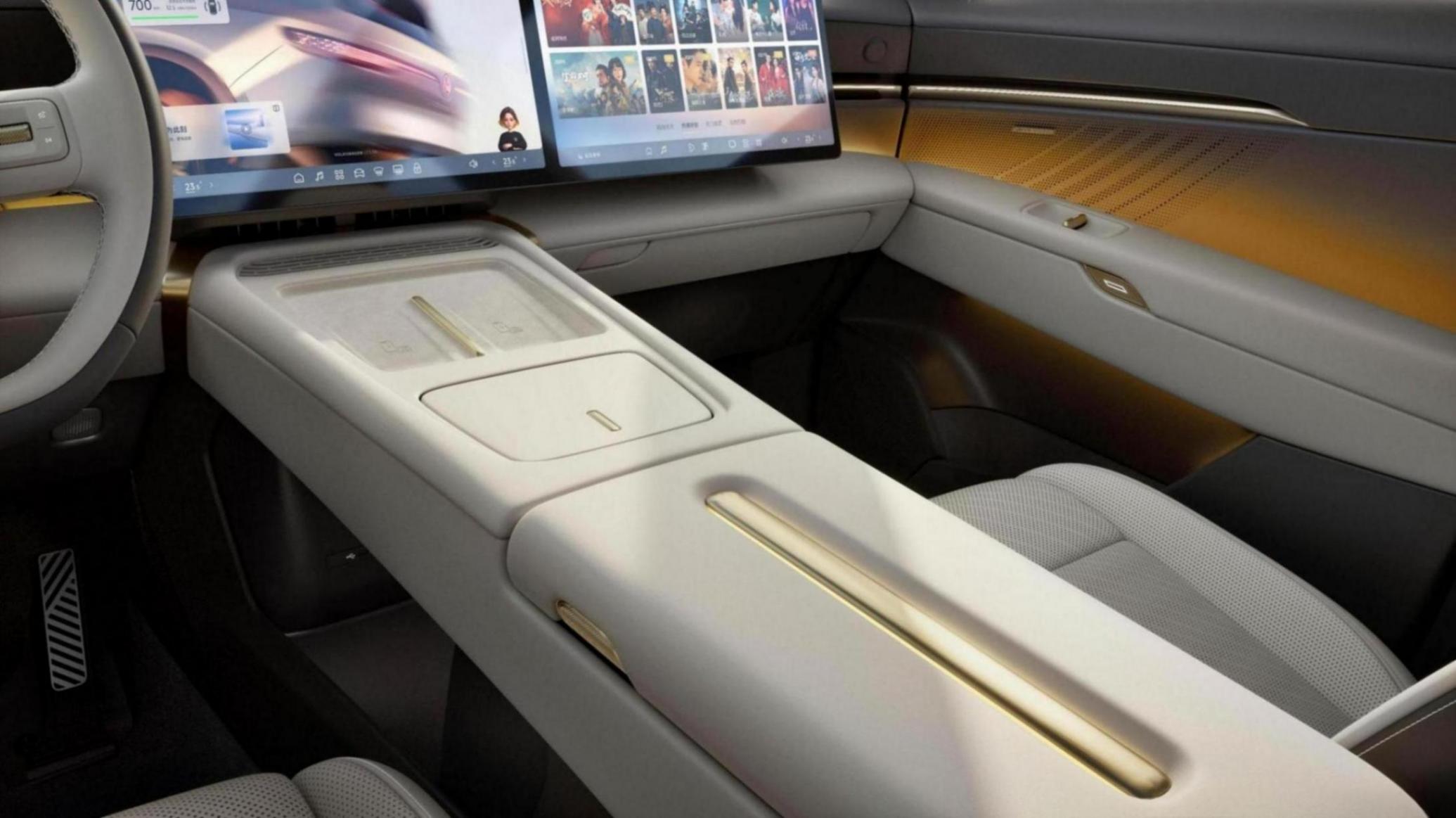 作为金标大众的首款纯电SUV,“金标”元素自然成为内饰设计的核心亮点,目光所及之处,金色设计元素贯穿座舱始终,让“金标”不再是车身外部的标识,更成为可触摸、可感知的日常体验。方向盘中央的金色发光logo,在车辆启动瞬间便会自动点亮,瞬间拉满仪式感,成为座舱内的视觉焦点;方向盘两侧的金色滚轮,采用精密工艺打造,转动时能感受到清晰的阻尼感,既提升了操作的精准度,又传递出德系车型的严谨品质。中央扶手区域设计有中轴对称的金色装饰条,线条精致流畅,与车身外部的金色中轴线形成呼应,进一步强化了整车的设计统一性,同时营造出专属感与精致感,细节之处尽显豪华格调。