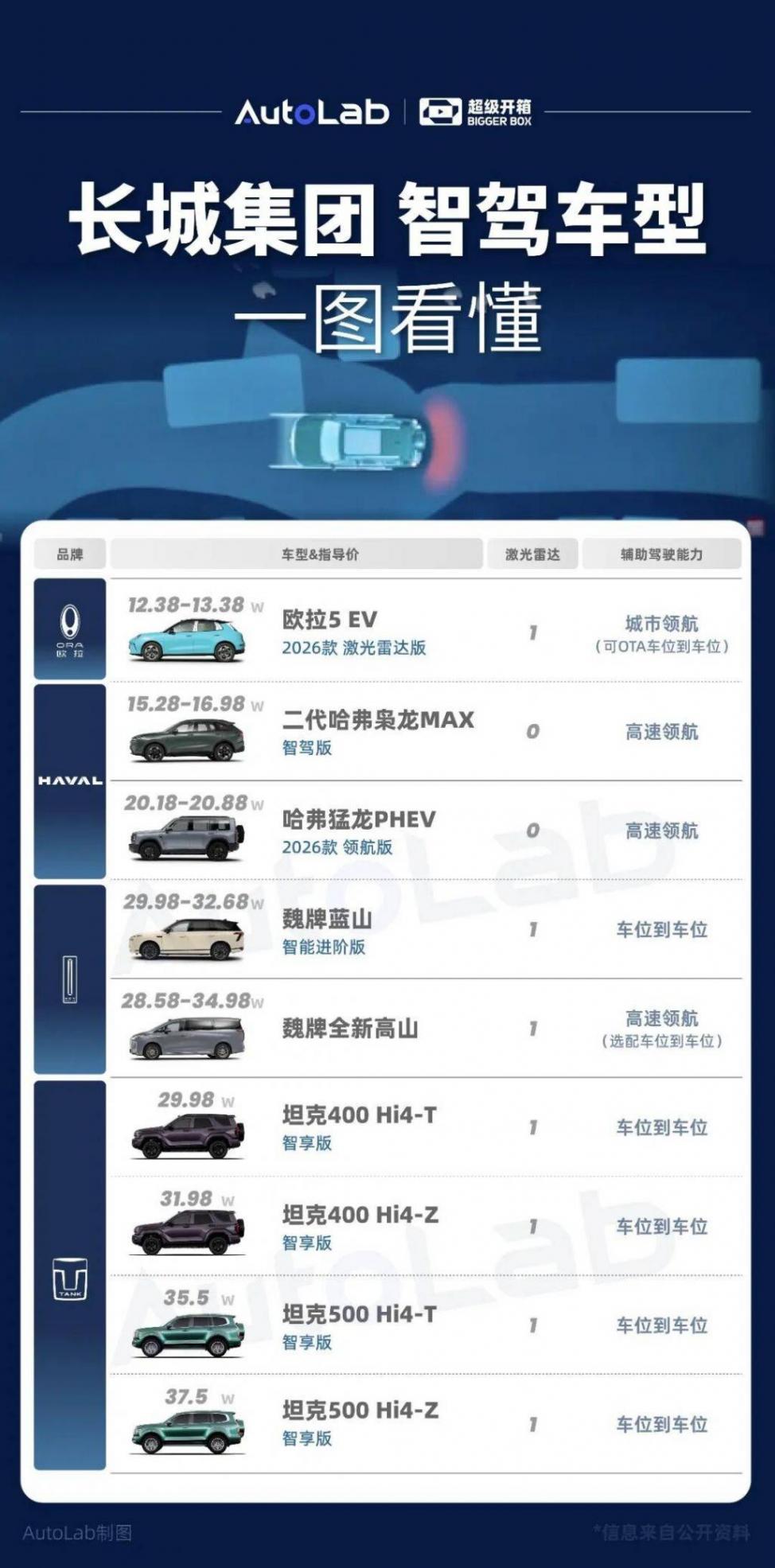 我们整理了一份榜单,带你一图了解长城集团的智驾车型。