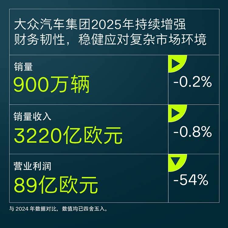 3 月 10 日,大众汽车集团在沃尔夫斯堡与北京同步发布 2025 财年完整业绩。在全球贸易摩擦、价格战加剧、电动化投入高企的多重压力下,集团全年营收勉强与上年持平,营业利润同比大幅下滑,汽车业务净现金流逆势增长成为财报中为数不多的亮点。中国市场继续担当大众全球业务的稳定器,不过盈利水平同比有所回落;集团旗下不同品牌集群业绩分化明显,豪华品牌与商用车板块承压显著。这份成绩单既展现出大众在行业变革期的财务韧性,也直白呈现出传统车企转型过程中难以回避的阵痛。