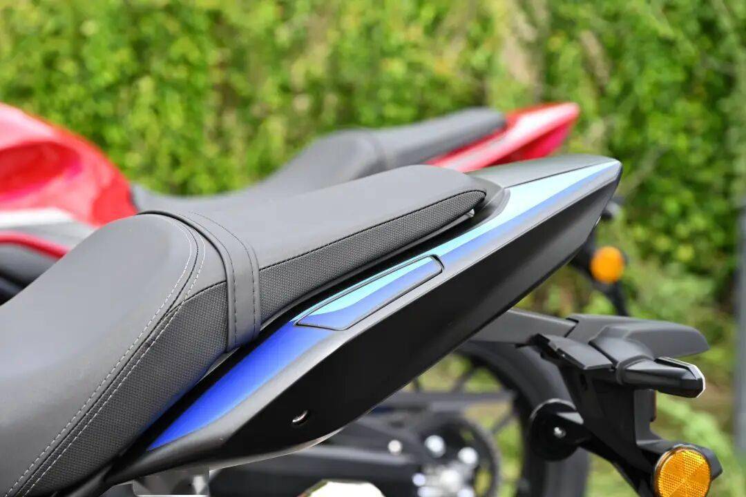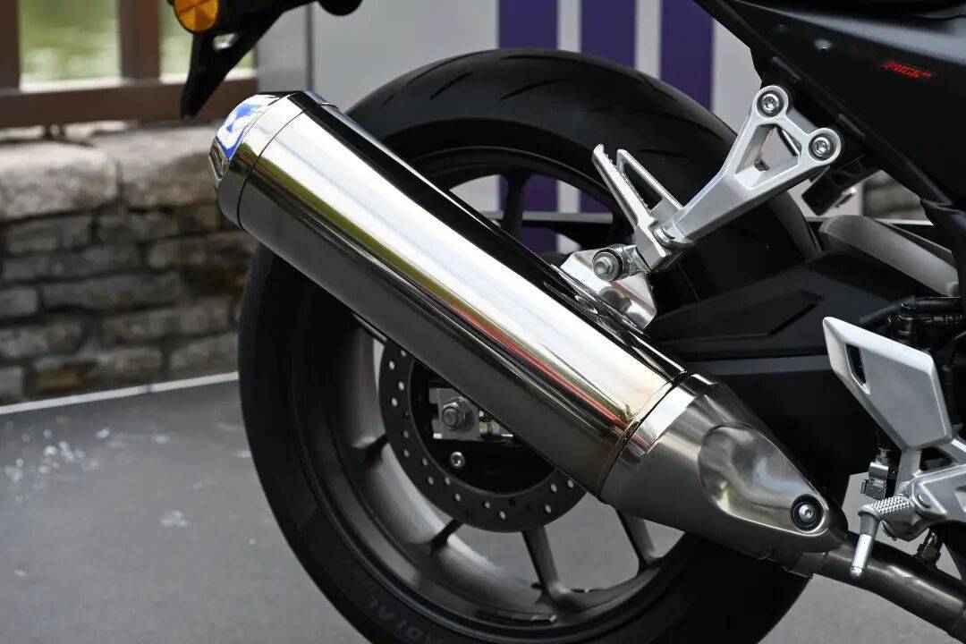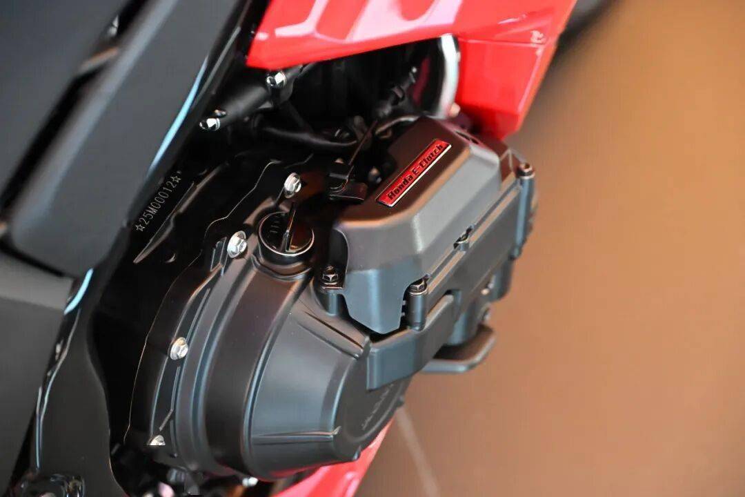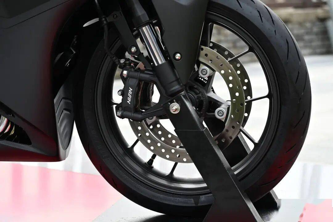 动力方面,采用502cc水冷四缸发动机,最大功率52.8千瓦,在11000转爆发,最大扭矩47.1牛米,在10000转爆发,发动机内部采用镍基碳化硅气缸壁技术,气门挺杆具备DLC图层,同时这个发动机也采用了大缸径短行程的设计,发动机后劲更足。