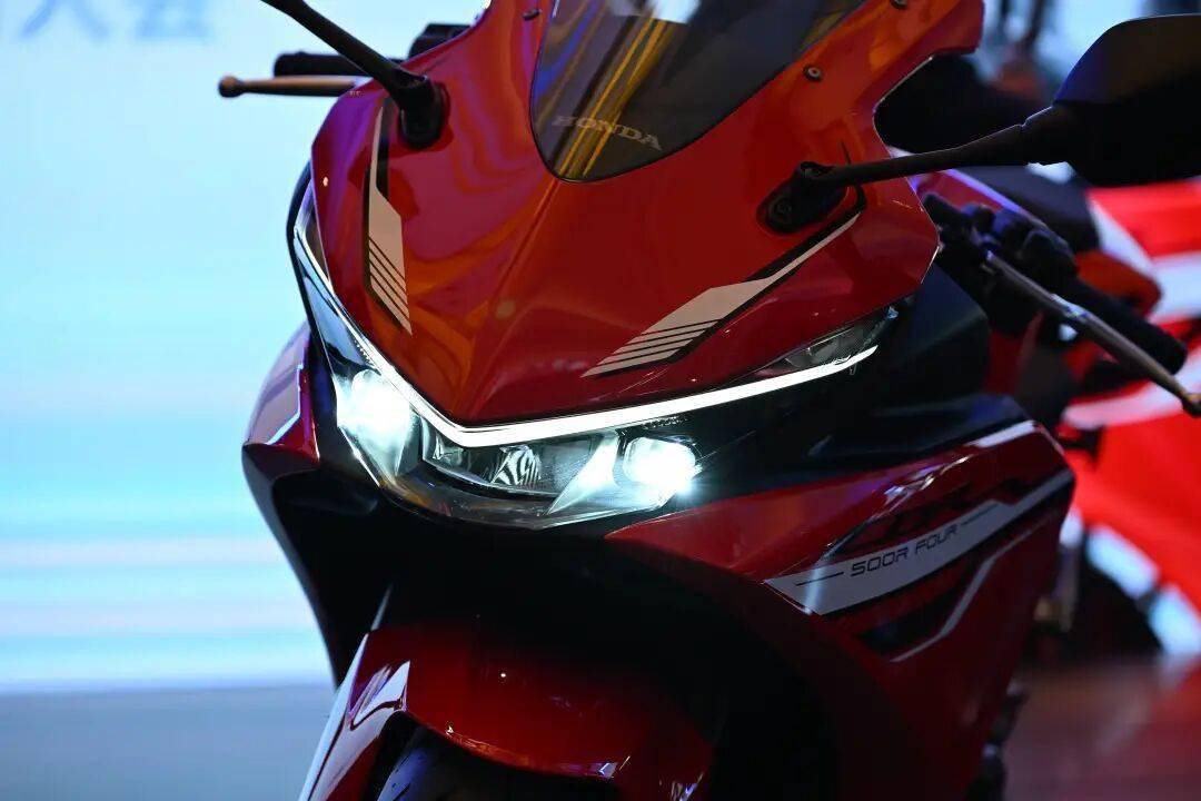 CBR500R Four的外观相比CBR家族则是有所改动,前部不是标志性的分离大灯,而是改为连体式大灯,整体上会更加犀利,战斗感更足。