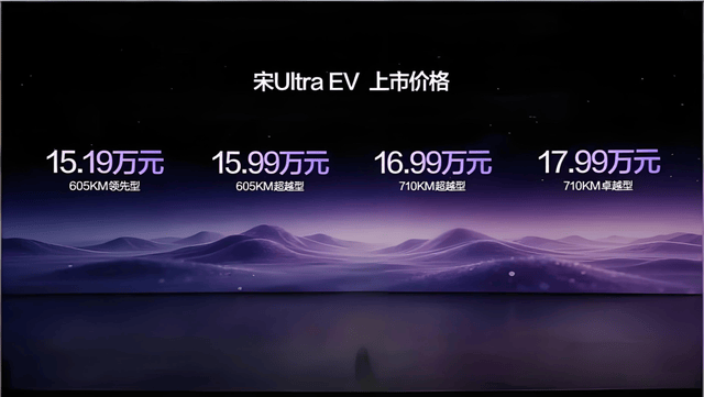 先和大家说说这款新车的价格,宋Ultra EV一共有4个版本,售价区间为15.19-17.99万元,再加上厂家提供的购车优惠,实际入门价不到15万元。